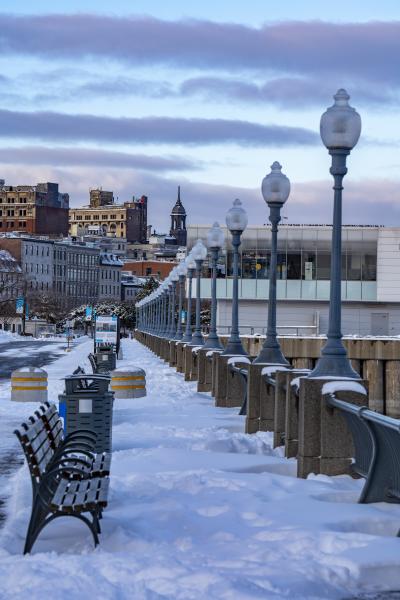 Rendez-vous sur les quais enneigés du Vieux-Port pour admirer le fleuve glacé sous la lumière hivernale. La saison froide y révèle toute sa beauté, ponctuée de vastes paysages et de moments qui en mettent plein la vue. Une véritable oasis de calme au cœur de la métropole.